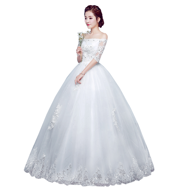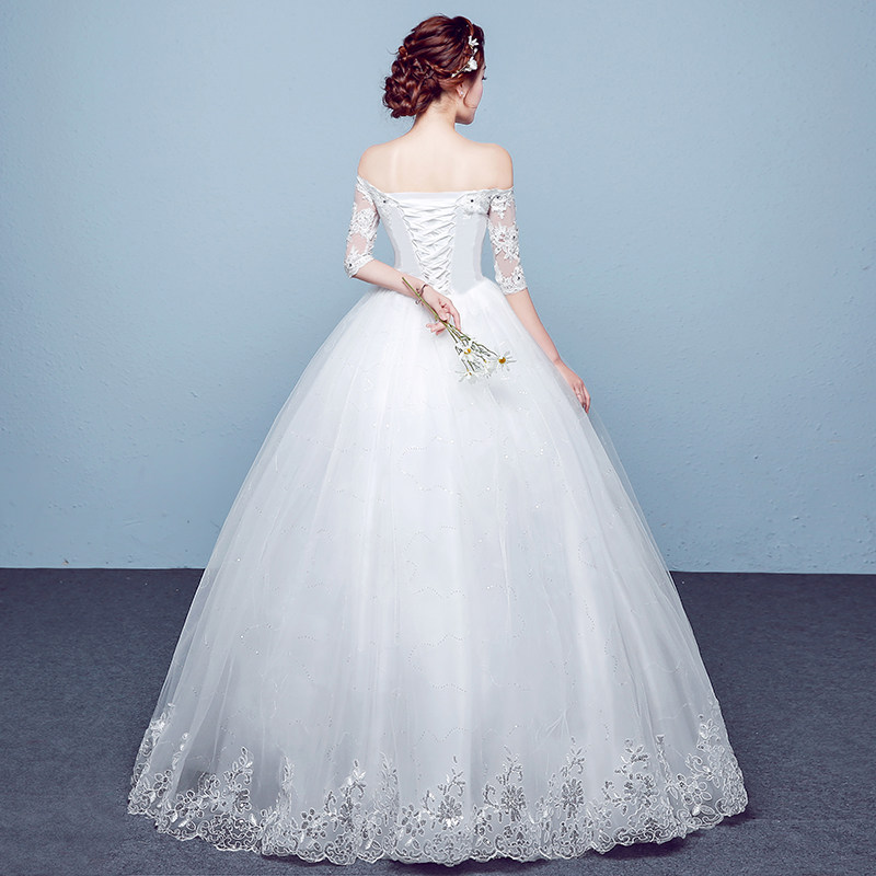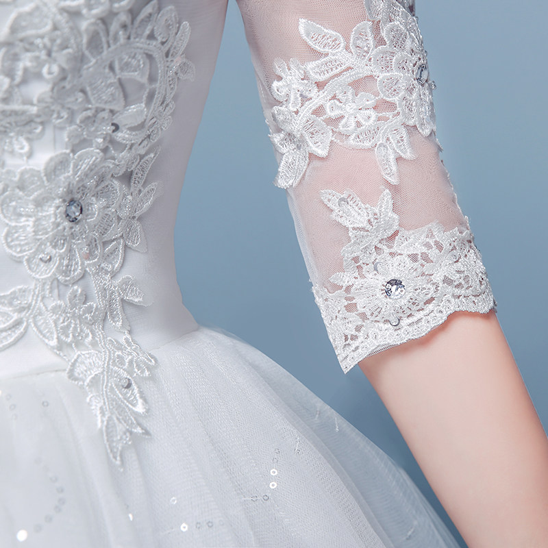 Wedding dress 2020 new style bride wedding big size mid sleeve lace Qi wedding dress Korean strap slim three-dimensional