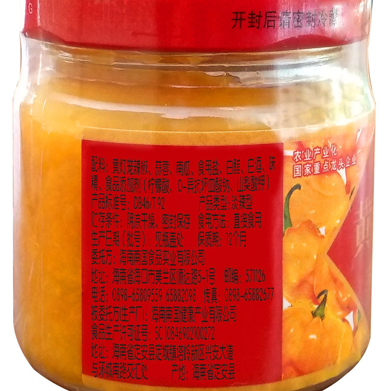 Hainan Specialty Nanguo Yellow Lantern Chili Sauce Spicy Type 100gx3 Chopped Pepper Garlic Noodles with Rice