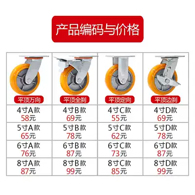 4 inch 5 inch 6 inch 8 inch caster heavy Korean arc iron core PU universal wheel caster equipment shelf cart wheel