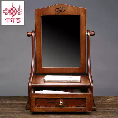 Wooden HD makeup mirror Retro Mirror desktop beauty makeup mirror folding desktop large Princess Mirror