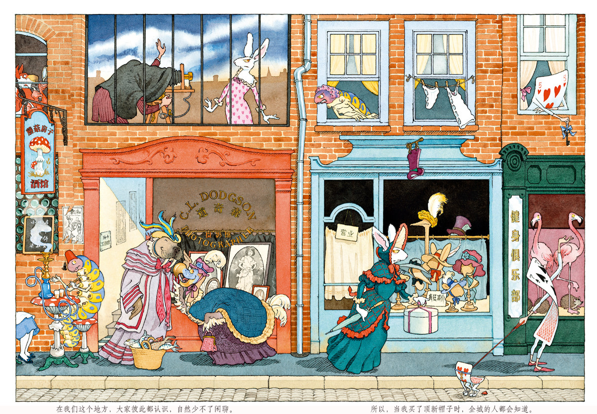(Give 4 postcards) Houlang genuine spot Mrs. White Rabbit hardcover Alice's Adventures in Wonderland: White Rabbit Extras Gilbashley's Works Children's Literature 6-12 Years Old Fairy Tales