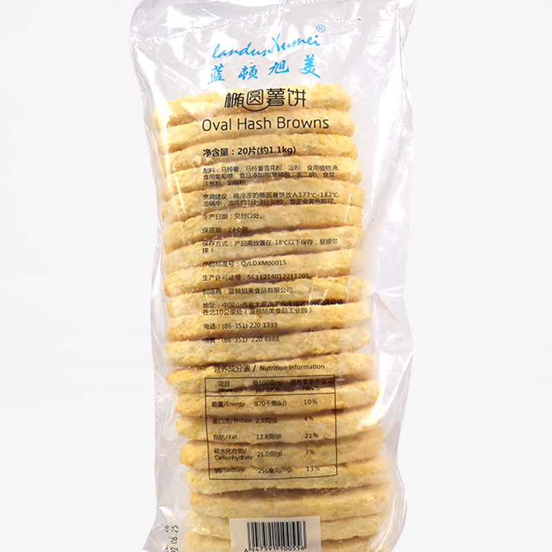 Langton Xumei Potato Cake Mcdonald's frozen OVAL potato cake frozen fries Breakfast potato cake 20 pieces bag 1 1KG