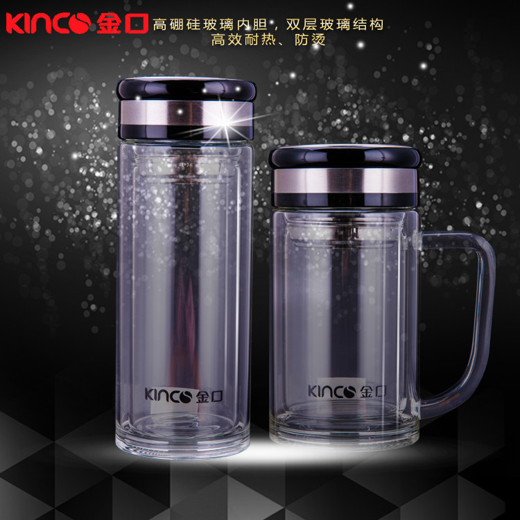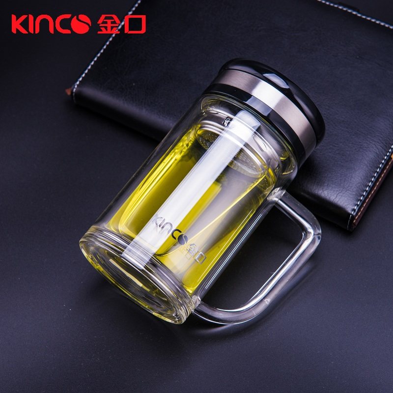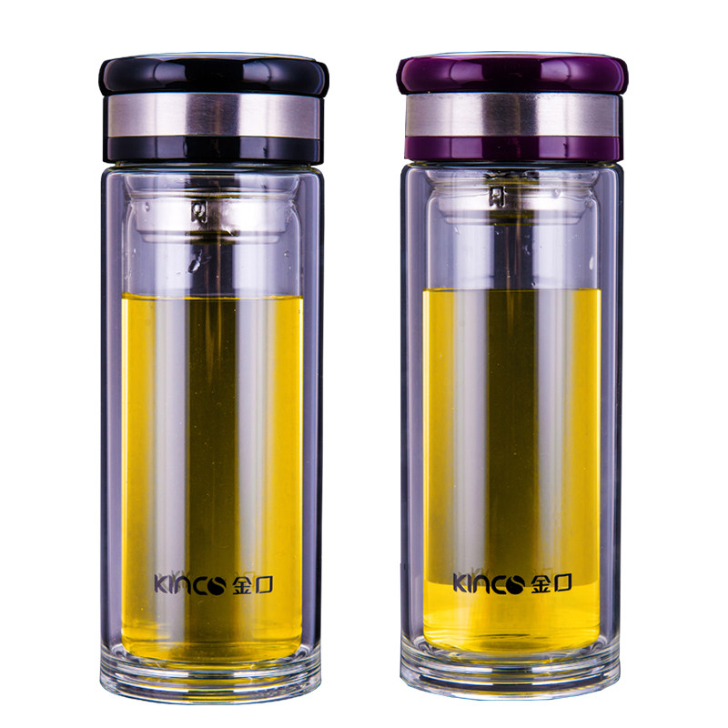 Gold mouth double-layer glass Large capacity water cup Men and women creative transparent portable filter tea cup with lid Car cup