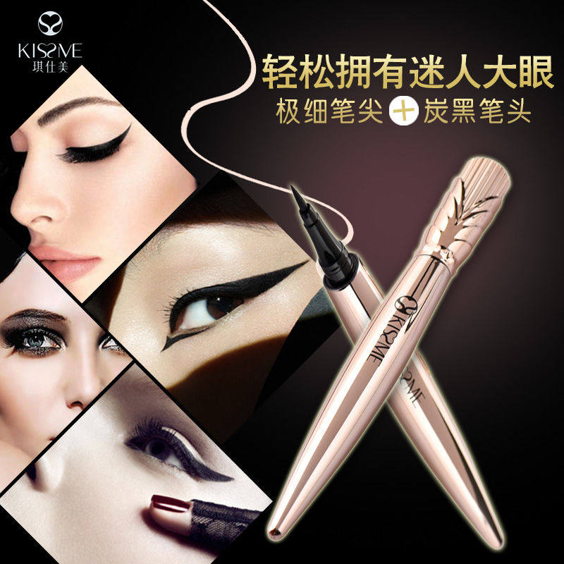 Qishimei gold eyeliner pen scepter cool black waterproof not smudged anti-sweat eyeliner pen cream long-lasting big eyes