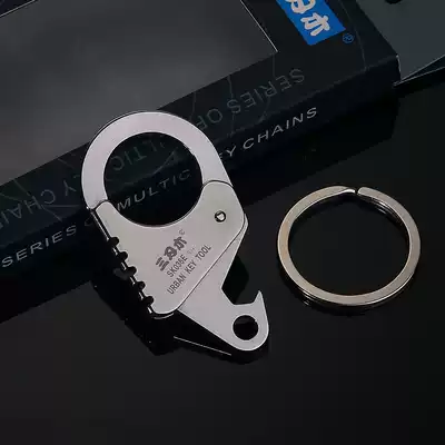 Three-edged Wood stainless steel multifunctional keychain male and female waist hanging car key ring key refining creative lettering
