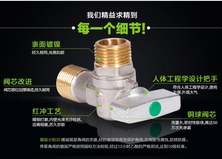 Weixing triangle valve Ball core large flow angle valve All copper thickened toilet water heater cold and hot universal water stop valve 4 points