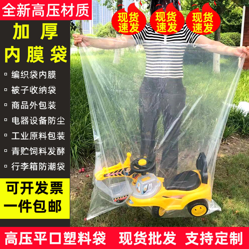 80*120cm thickened large high pressure inner film bag pe flat mouth packaging bag transparent moisture-proof plastic bag moving bag