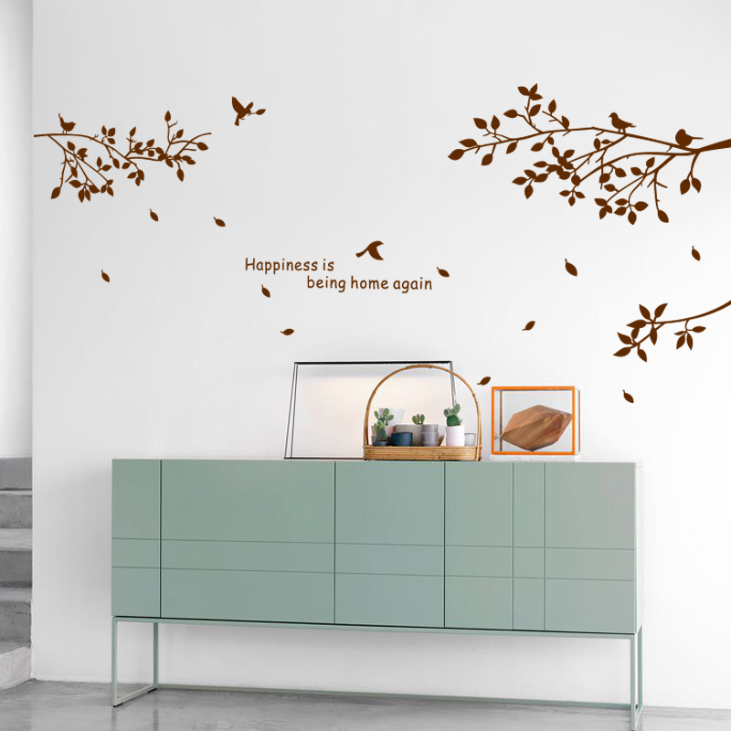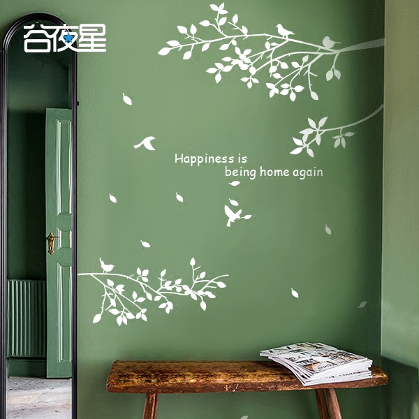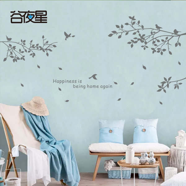 Branch Small Bird Wallpaper Self-Glued Bedroom Cozy Sticker Bedside Living Room Sofa TV Book House Genguan Wall Sticker
