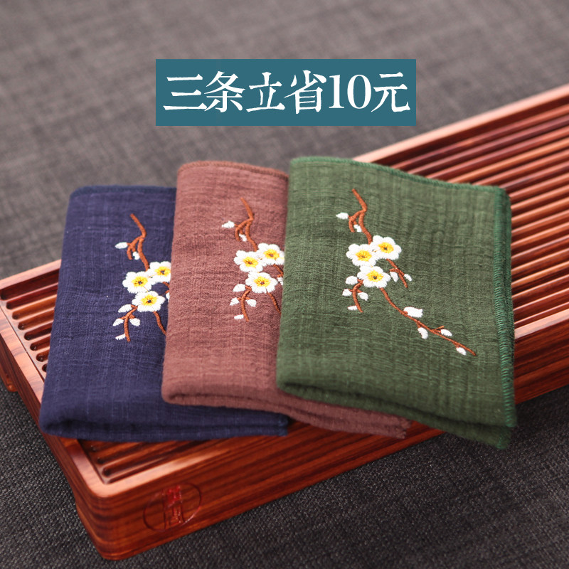 Plume plum embroidered tea towel old coarse cloth tea cloth Absorbent Thickened Cotton Linen Tea Mat Bucha Road Accessories