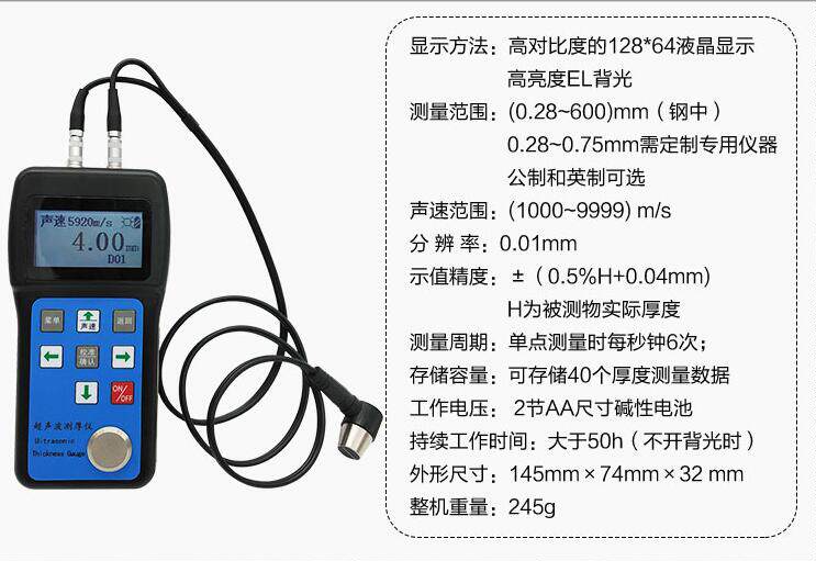 High-precision ultrasonic thickness gauge 0 01 metal sheet glass plastic thickness measurement steel pipe wall thickness gauge