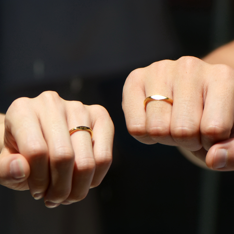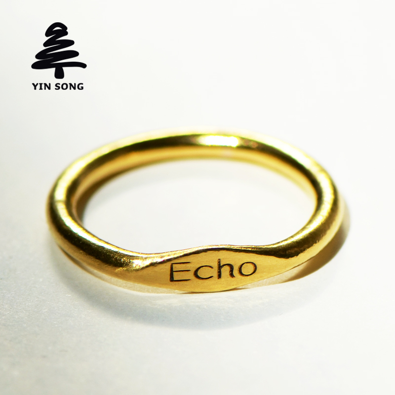 Craftsman handmade custom pure gold ring gold plain gold simple personality wedding men and women couple ring lettering