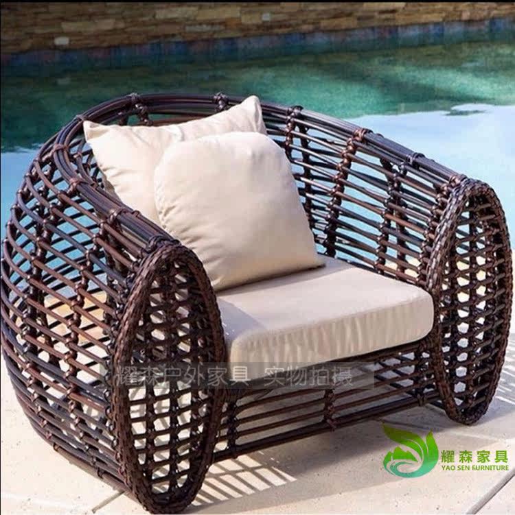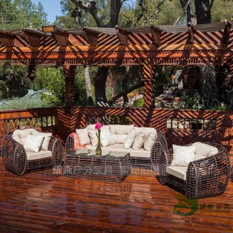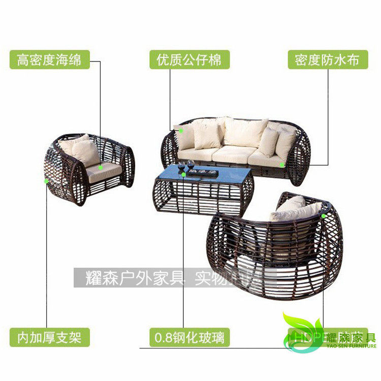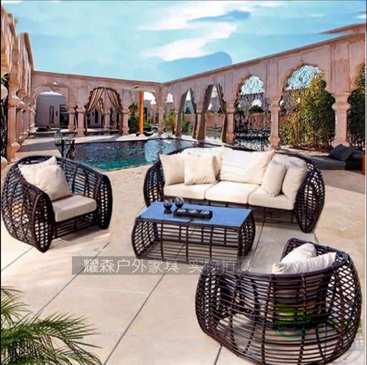 Outdoor sofa rattan chair coffee table balcony hotel villa high-end rattan sofa rattan furniture sofa three-piece combination