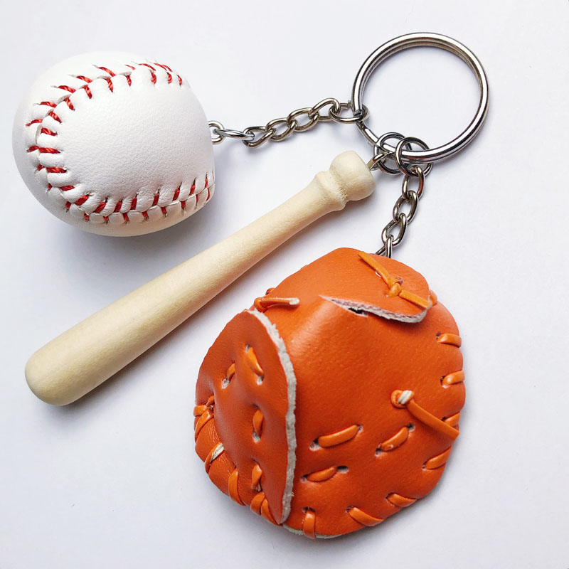 Mini baseball model key button piece match small gift three package backpack jewelry baseball key chain