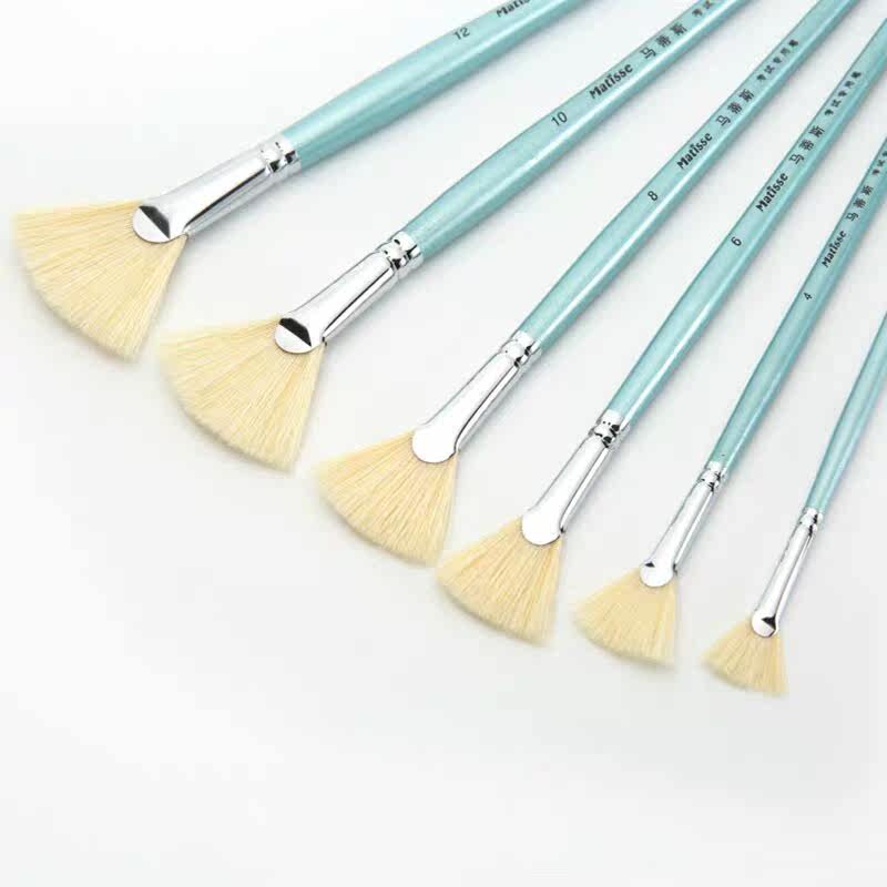 Sector Pen Mattis White Pig Mane Sector Pen Oil Paintbrush Water Powder Paintbrush Hard Hair Light Blue Pen Rod