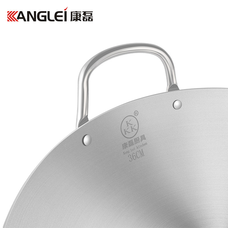 Kanglei non-stick wok frying pan stainless steel wok home round bottom gas stove suitable for chefs commercial kitchen pots and pans