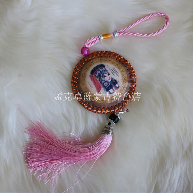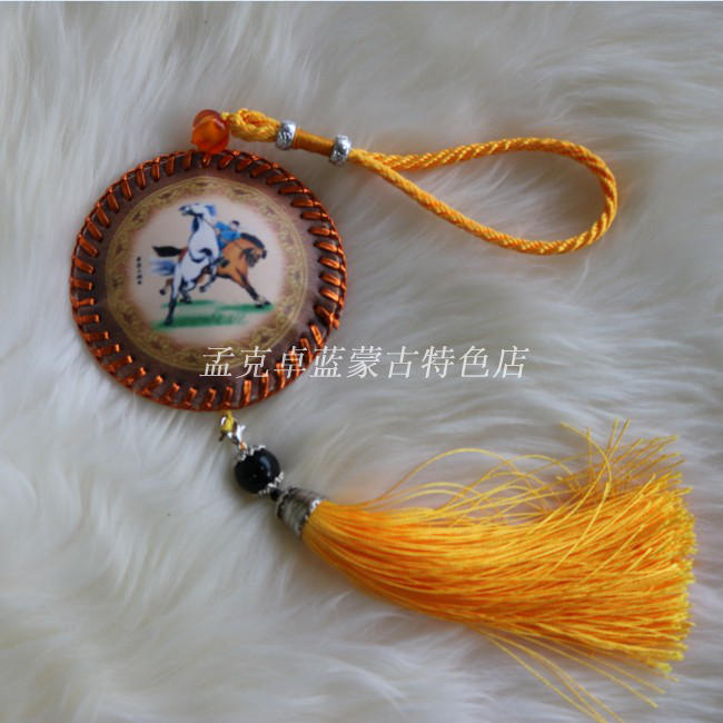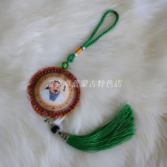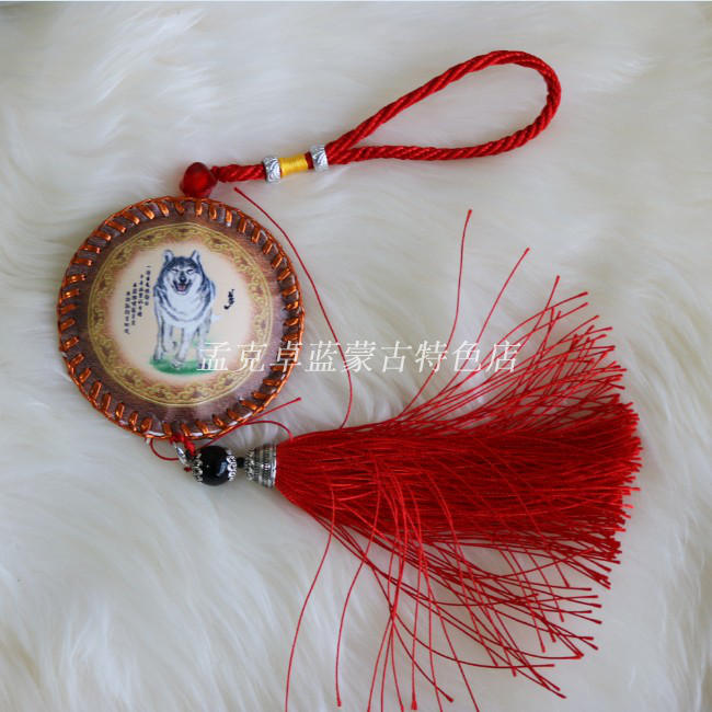 Mongolian elements Genghis Khan wolf pattern leather painting tassel car pendant decorative hanging prairie tourist souvenir gift