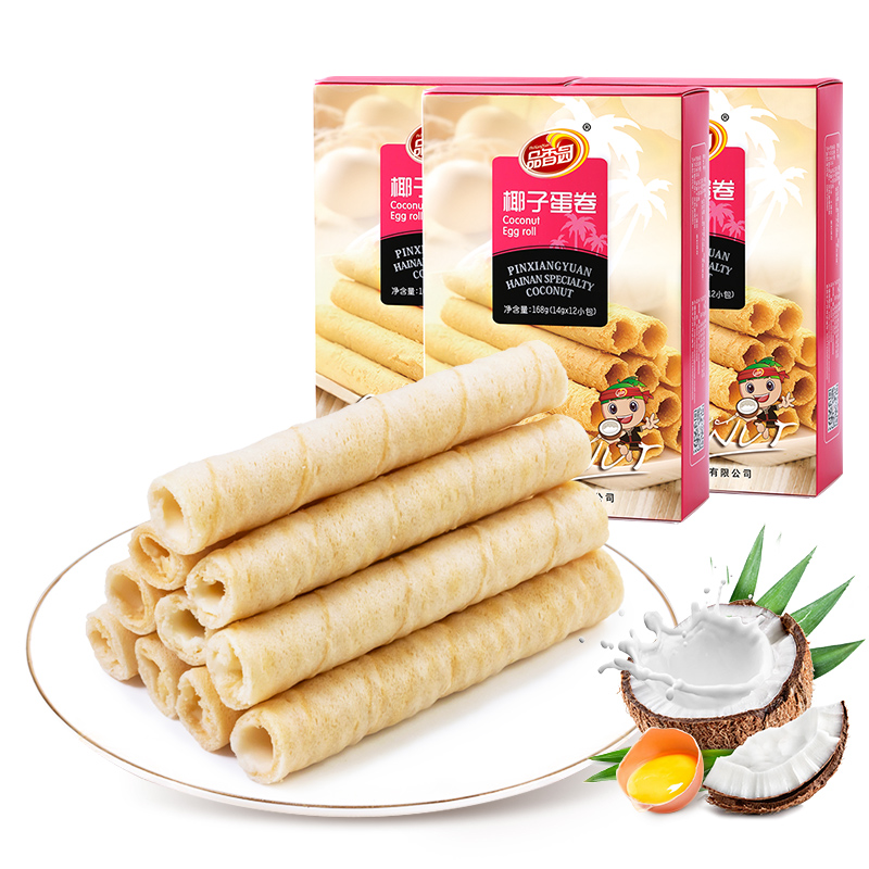 Pint Aroma Garden Coconut Egg Roll 168gX3 Box Dress Hainan Special Broccoli Chicken Egg Roll Biscuit Casual Little Snacks Pancakes