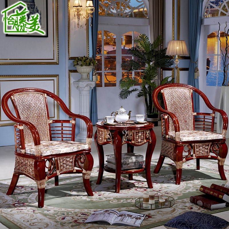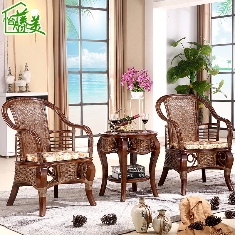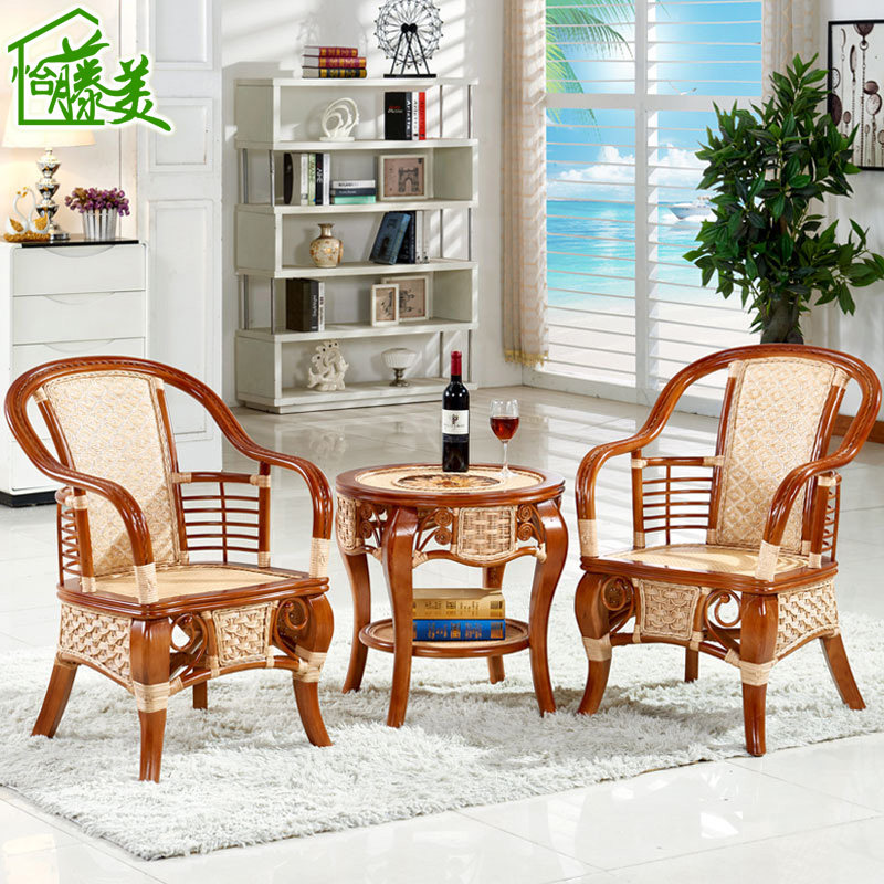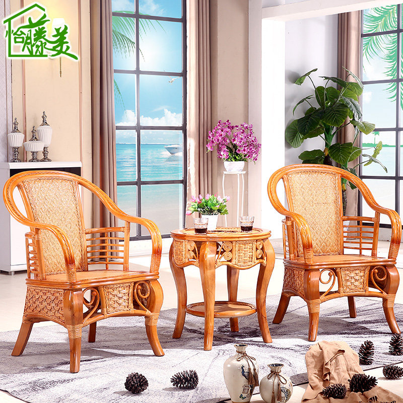 Living room solid wood real rattan chair coffee table three-piece set rattan rattan weaving guest leisure courtyard Yangtai table and chair combination