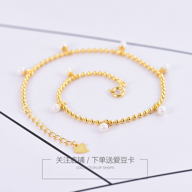 Golden American and Australian pure silver ball string beads simple fresh day Korean bab beads can be engraved to give girlfriend gifts
