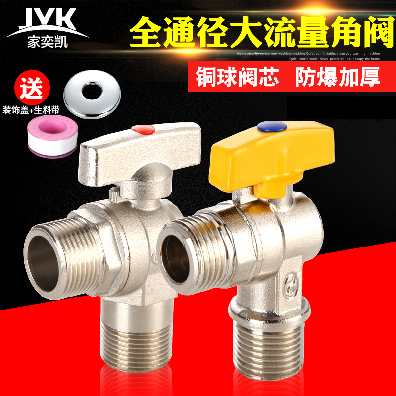 Full copper thickened large-flow triangular valve water heater hot and cold water ball core fully open gas gas 4 points 6 ball valve