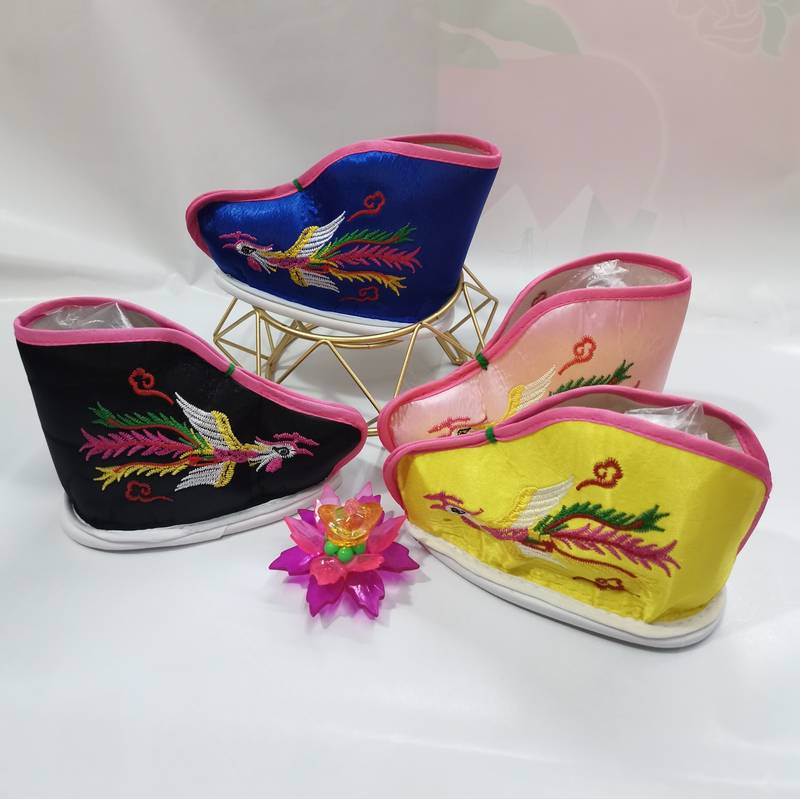 Shiyang Putian worship boots Bodhisattva Mazu Taishan grandma Guanyin Niangniang Su embroidered three-inch golden lotus shoes red and yellow phoenix boots