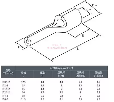 IT1-2 brass pin type cold press terminal small black clip pin pin type wire lug terminal block 1000 only 0 5mm
