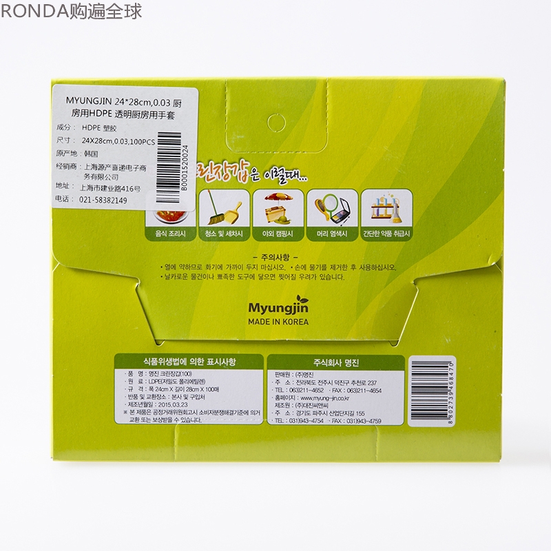Korea imported MYUNGJIN kitchen transparent thickened film disposable gloves PE plastic dishwashing gloves set