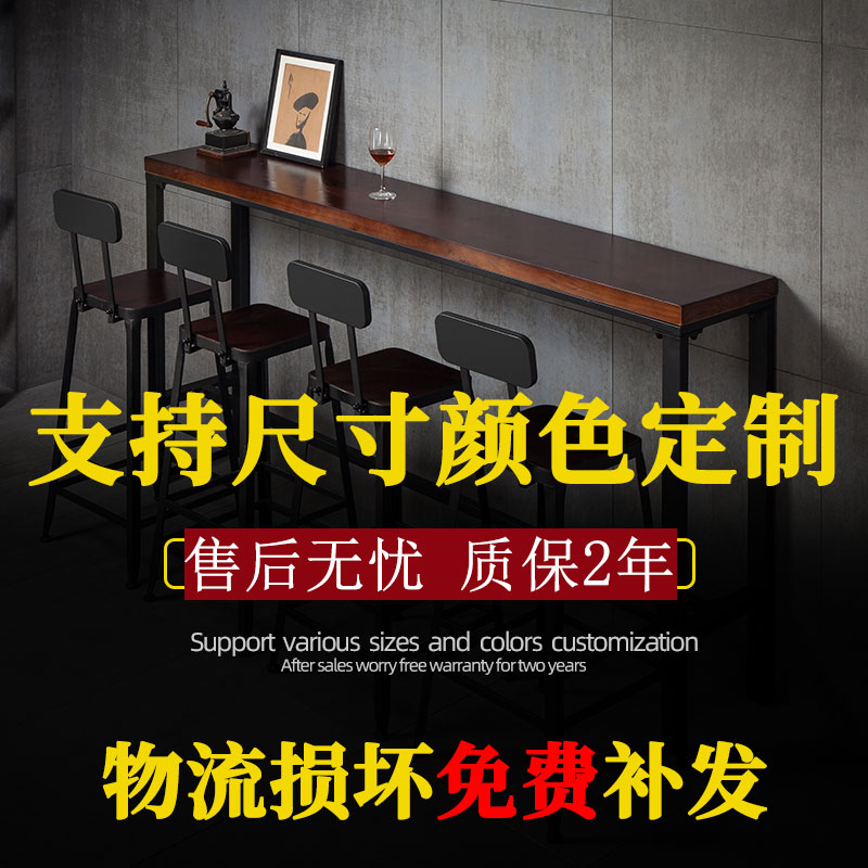 Bar table simple home modern bar wall table and chair combination high table iron solid wood long narrow high table