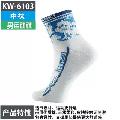 Kawasaki professional badminton socks thickened towel bottom men's socks cotton sweat-absorbing tennis socks short tube sports socks