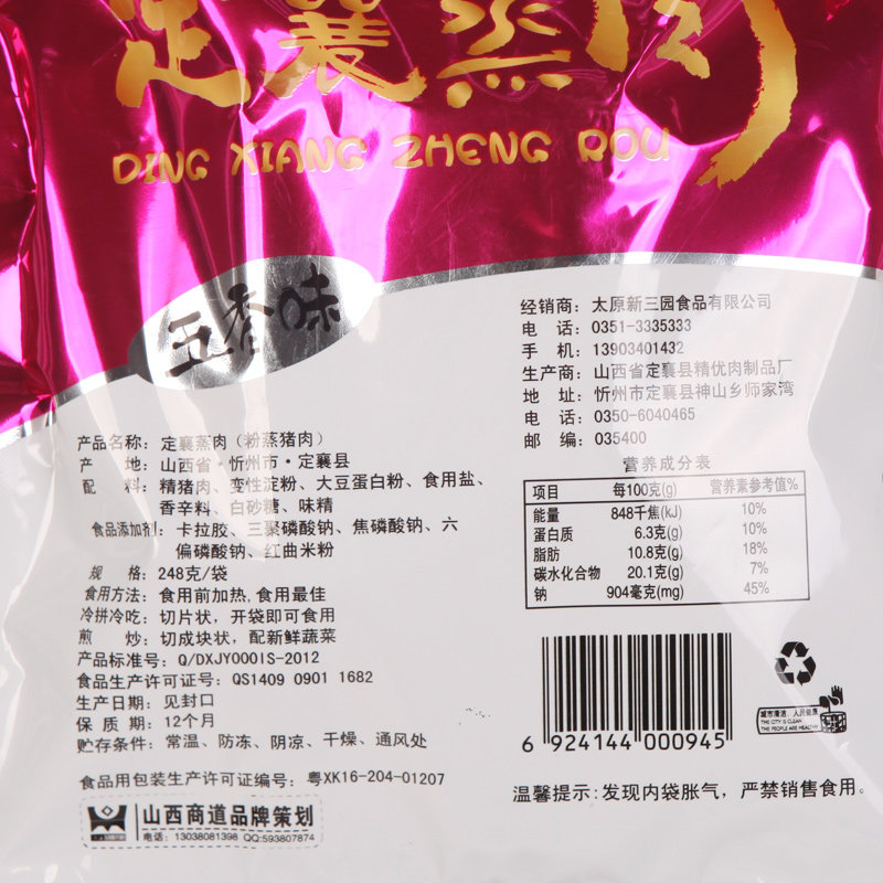 Shanxi Xinzhou specialty Dingxiang steamed meat Han Jinyou Dingxiang steamed meat 248g * 2 bags of five spice powder steamed meat ham