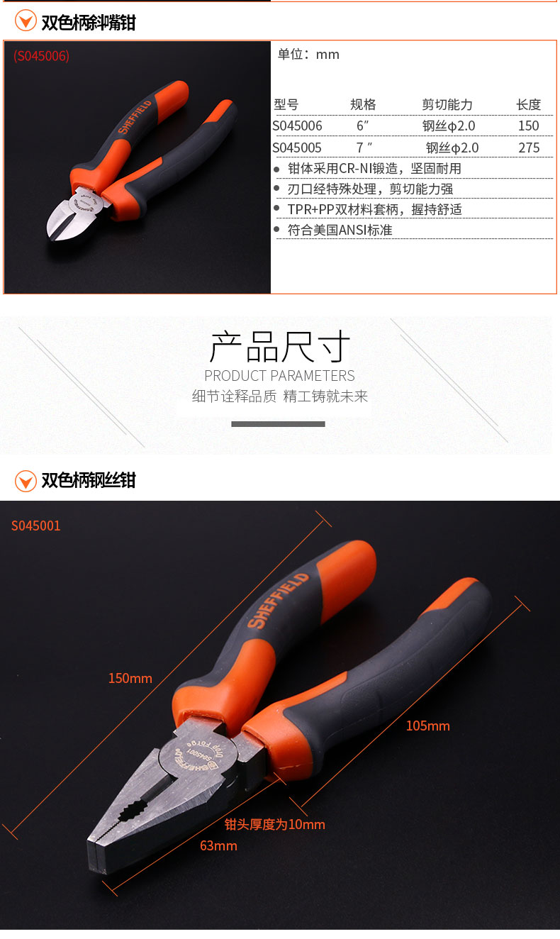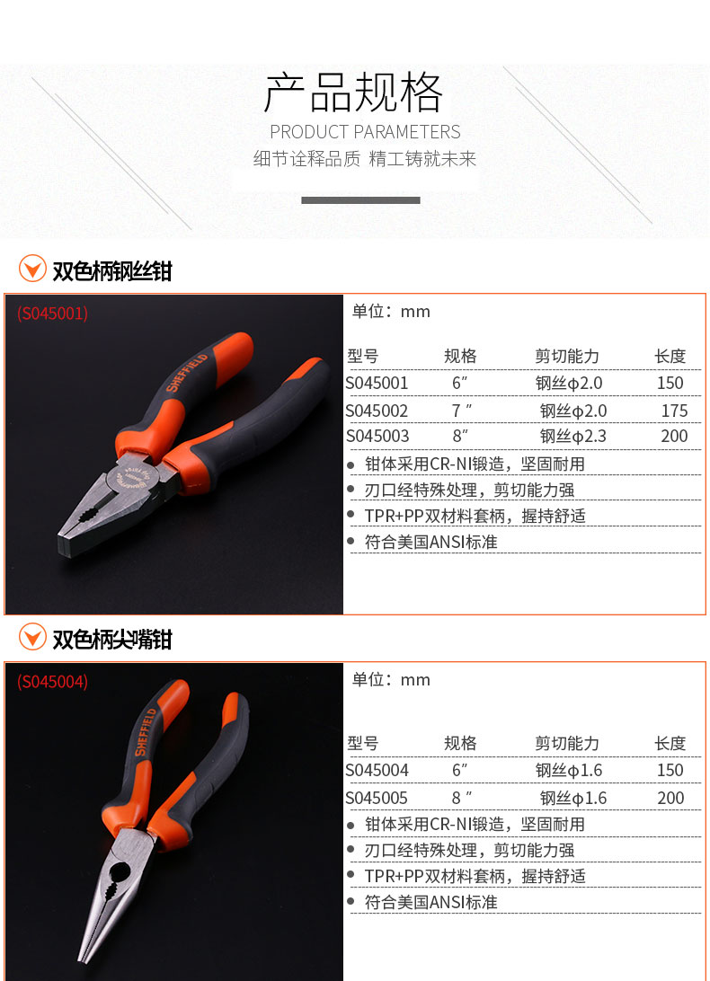 Steel shield S045001 old tiger pliers wire pliers 6 inch 8 inch sharp mouth pliers diagonal mouth pliers fishing tiger mouth pliers