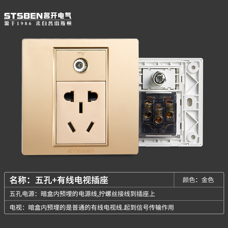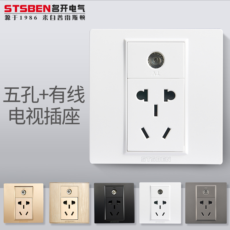 Five-hole TV socket (white) Five-hole TV socket (gold) Five-hole TV socket (grey) Five-hole TV socket (black)