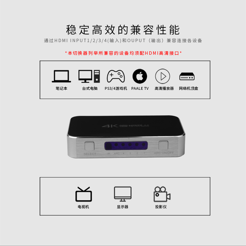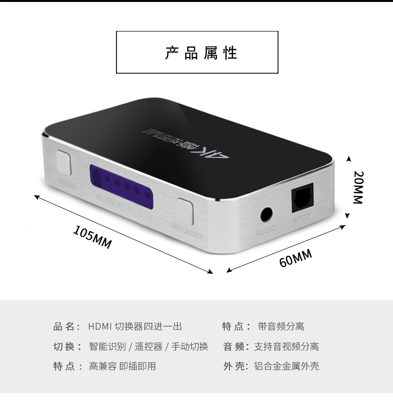 HDMI switcher four in 1 out 4K splitter 4 in 3 in one out HD 4k video and audio splitter 3d