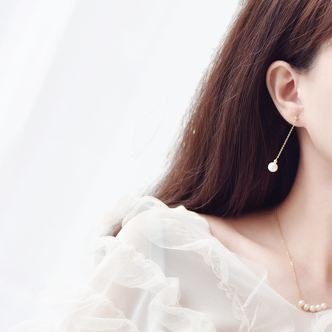Wild style simple temperament Wild 14K gold round face long version ins cold wind Sterling silver pearl earring ear clip