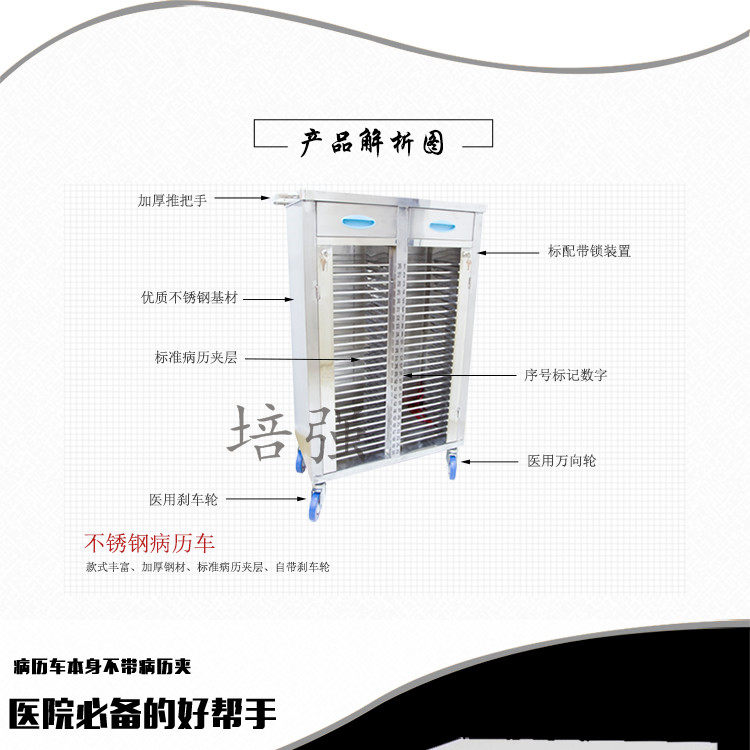 Thickened stainless steel medical record cart case cabinet stainless steel case clip cart hospital cart ABS medical record clip