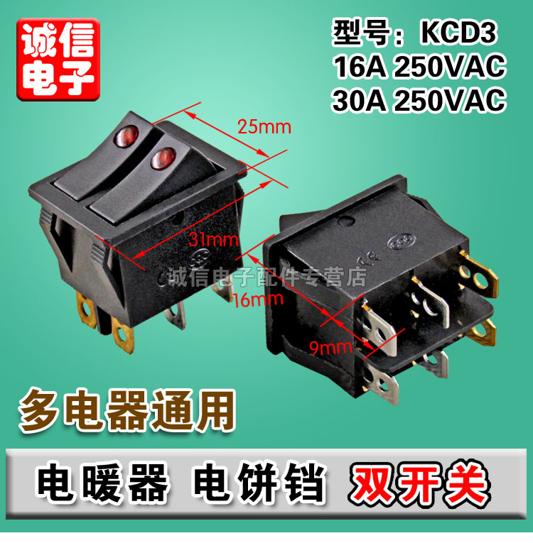 Electric Oil Tine Switch Copper Feet Electric Heater Switch Water Heater Electric Cake Pan Switch Boat Type Double Switch Cat Eye