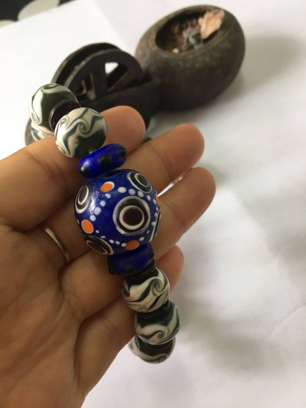 Man's dragonfly eye glazed hand string of old glazed hand string Xiang Yunan Solo