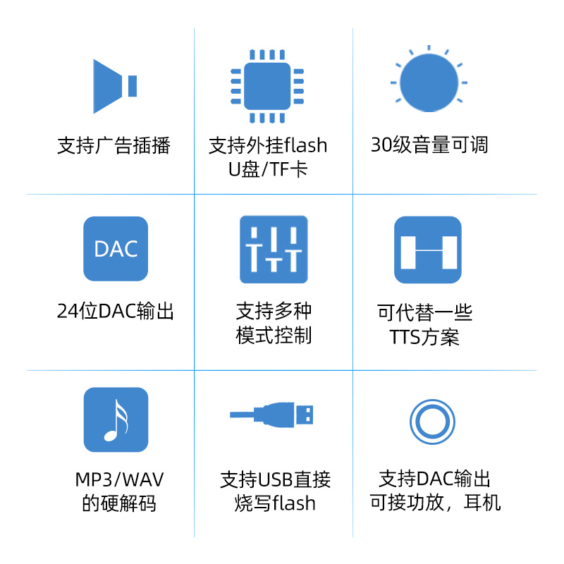 YX6300-24QS voice MP3 main control chip solution industrial serial port TTL9600 baud rate original factory