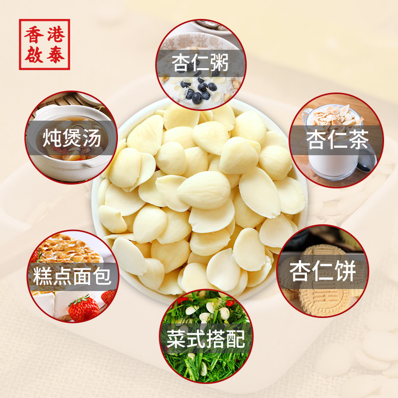 Hong Kong Kai Tai North and South Almond slices Raw sweet dried almonds Freshly peeled and peeled White original Cantonese soup with soy milk