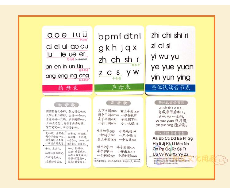 Young children's Chinese without picture pinyin cards full set of first grade learning kindergarten pre-class letters aoe 72 sheets
