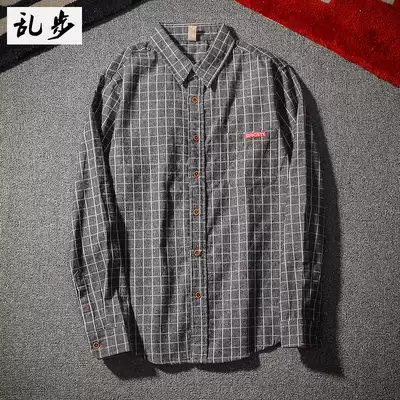 Japanese tide brand literature and Art College retro brushed shirt Korean version slim plaid men and women couples autumn long-sleeved shirt
