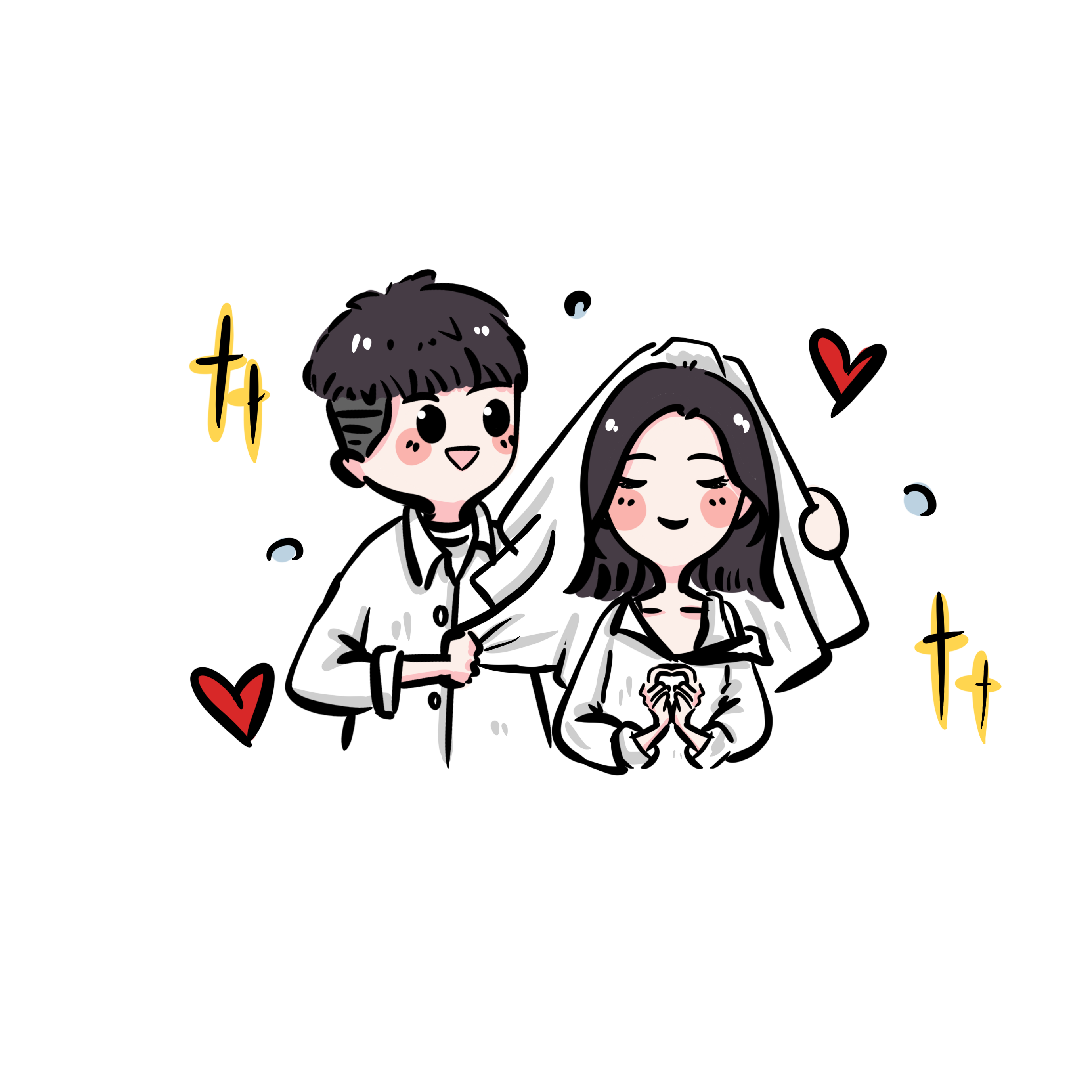 Hand-painted avatar Q version cartoon stick figure avatar couple mobile phone case pattern design comic custom photo hand-drawn