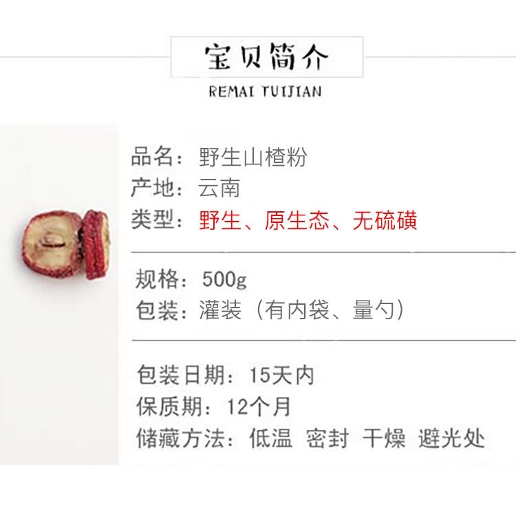 Special Grade Ultrafine Now Grinding Pure Hawthorn Powder 500g Wild Sugar-free No Additive Non-nuclear Tea