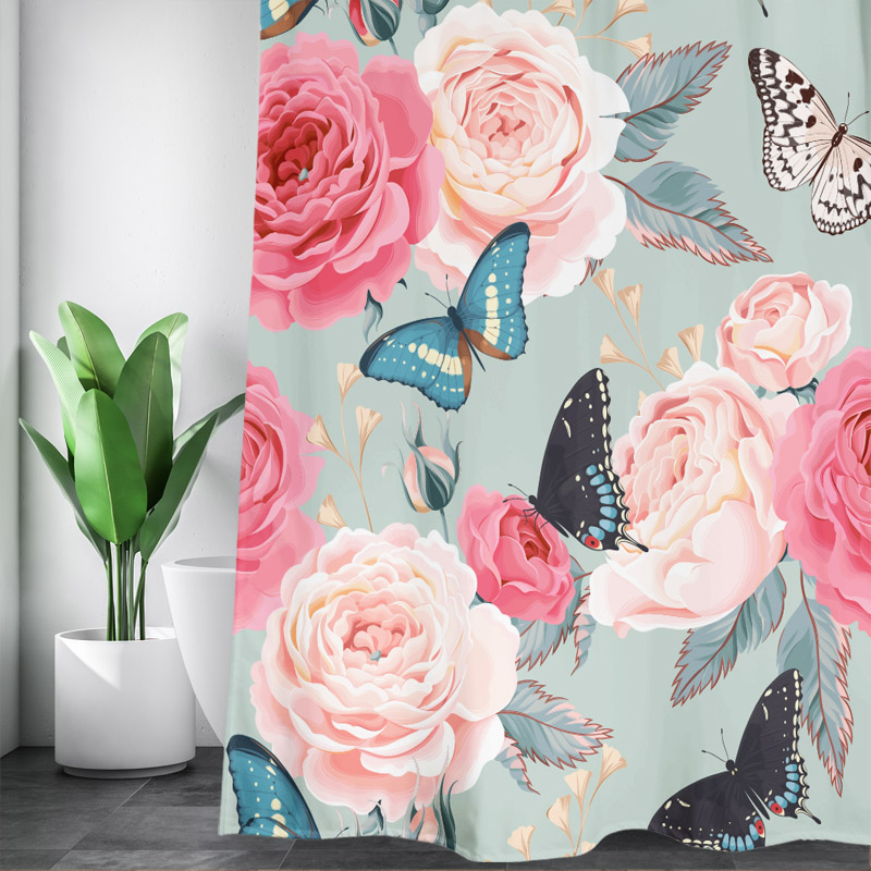 Nordic European shower curtain Powder room shower curtain Butterfly bathroom cloth thickened mildew proof waterproof pastoral style polyester fiber curtain