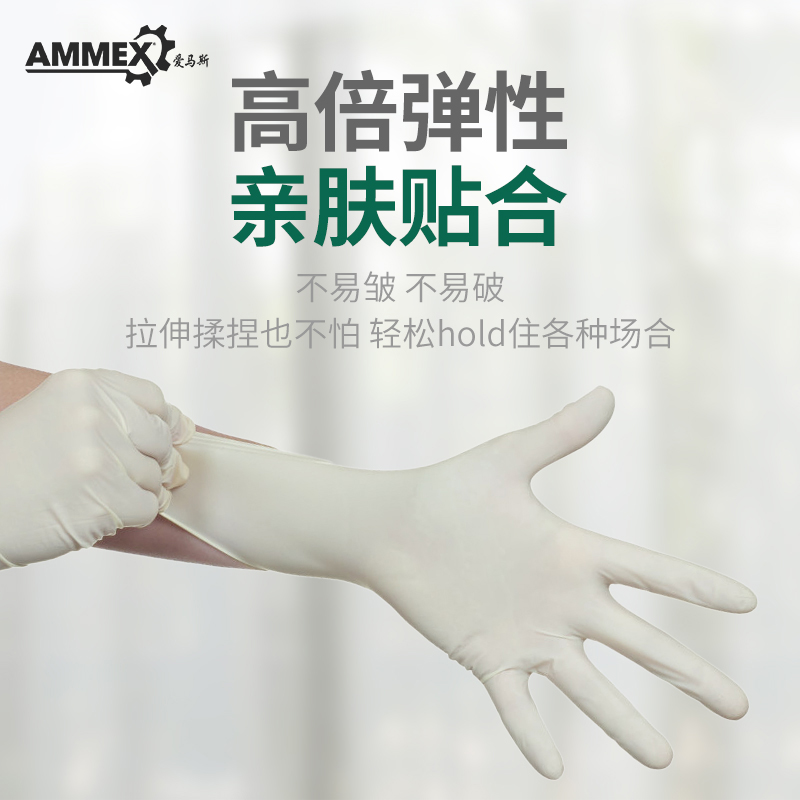 Amas disposable latex rubber PVC thickened gloves Household doctor examination catering baking gloves 100