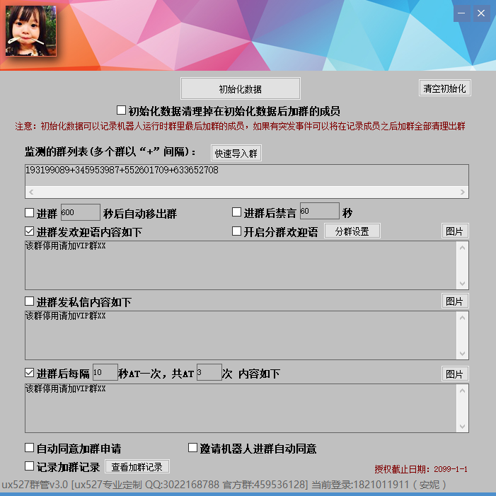 Join the group Welcome reminder Join the group Gag private message Kick out QQ group tube QQ robot robot set