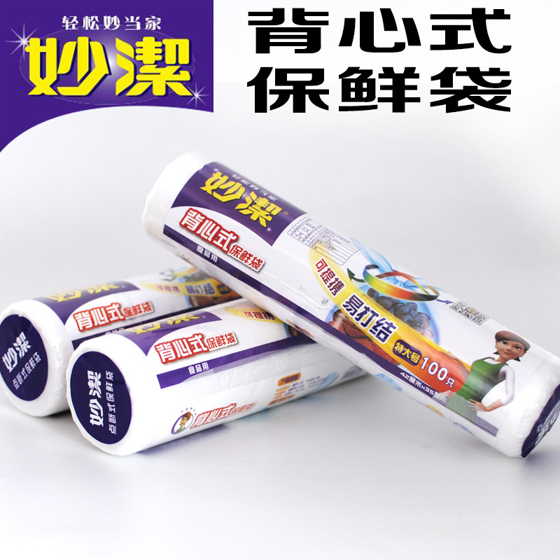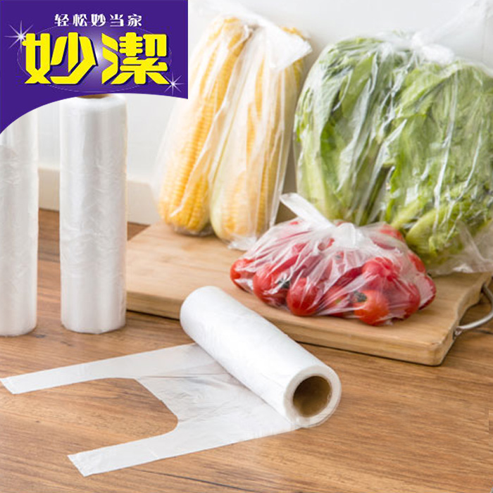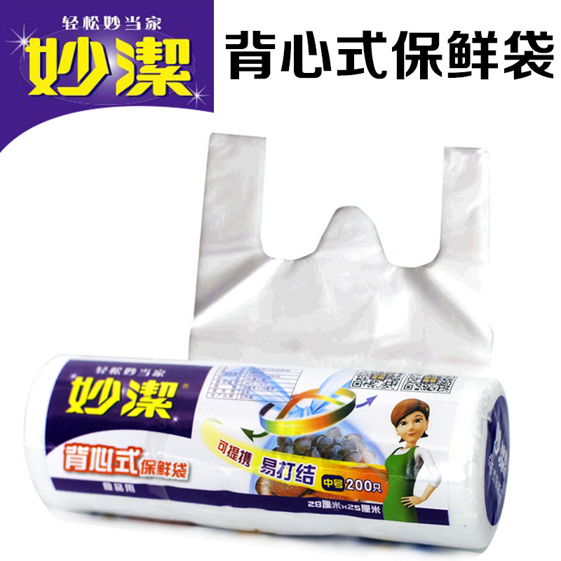 (Buy 5 get 1 free) Miaojie fresh-keeping bag vest type extra large food bag medium hand tear bag household continuous roll bag