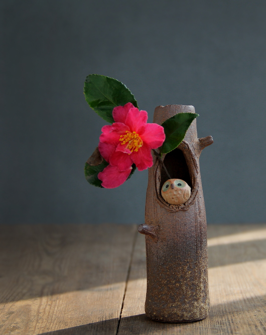 Spot Japan Import Letter Burn Hands for Coarse Pottery Stumps Owl Small Flower Bottle Japanese Flower Arrangement Small Floral Ware Pendulum