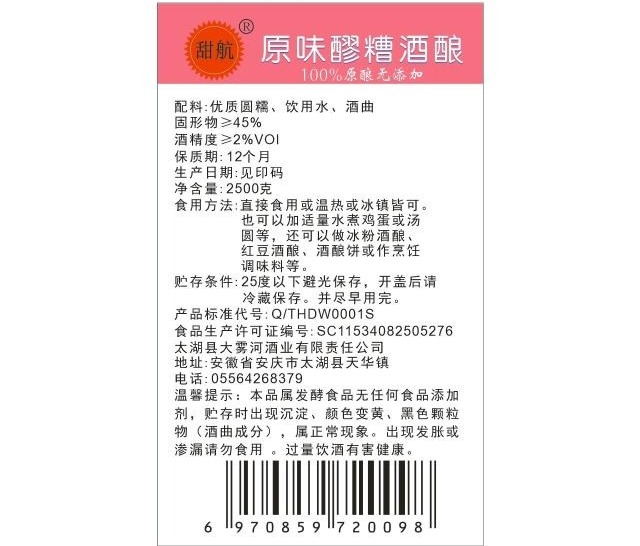 Dawuhe original flavor fermented glutinous rice wine brewed with sweet distiller's grains 35 catties coffee ice powder hot pot red bean glutinous rice balls bread dessert ingredients
