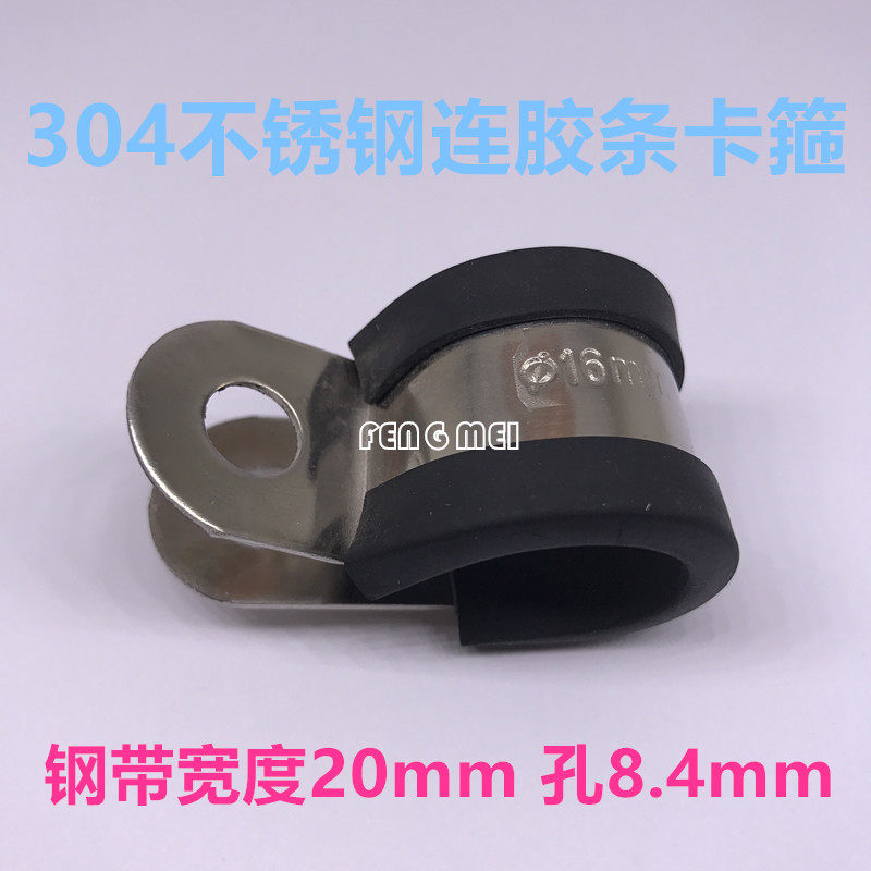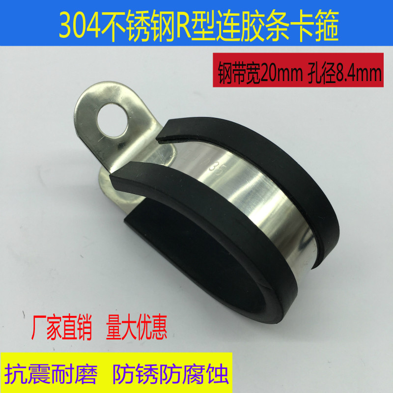 304 stainless steel with rubber strip clamp R-type fixed card SHJF rubber shock absorption clamp bandwidth 20mm hole 8 4mm